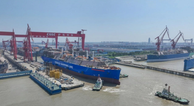 8月9日,中国船舶集团旗下沪东中华3艘第五代LNG船生产节点告捷,实现2船出坞、1船开工三大生产节点。