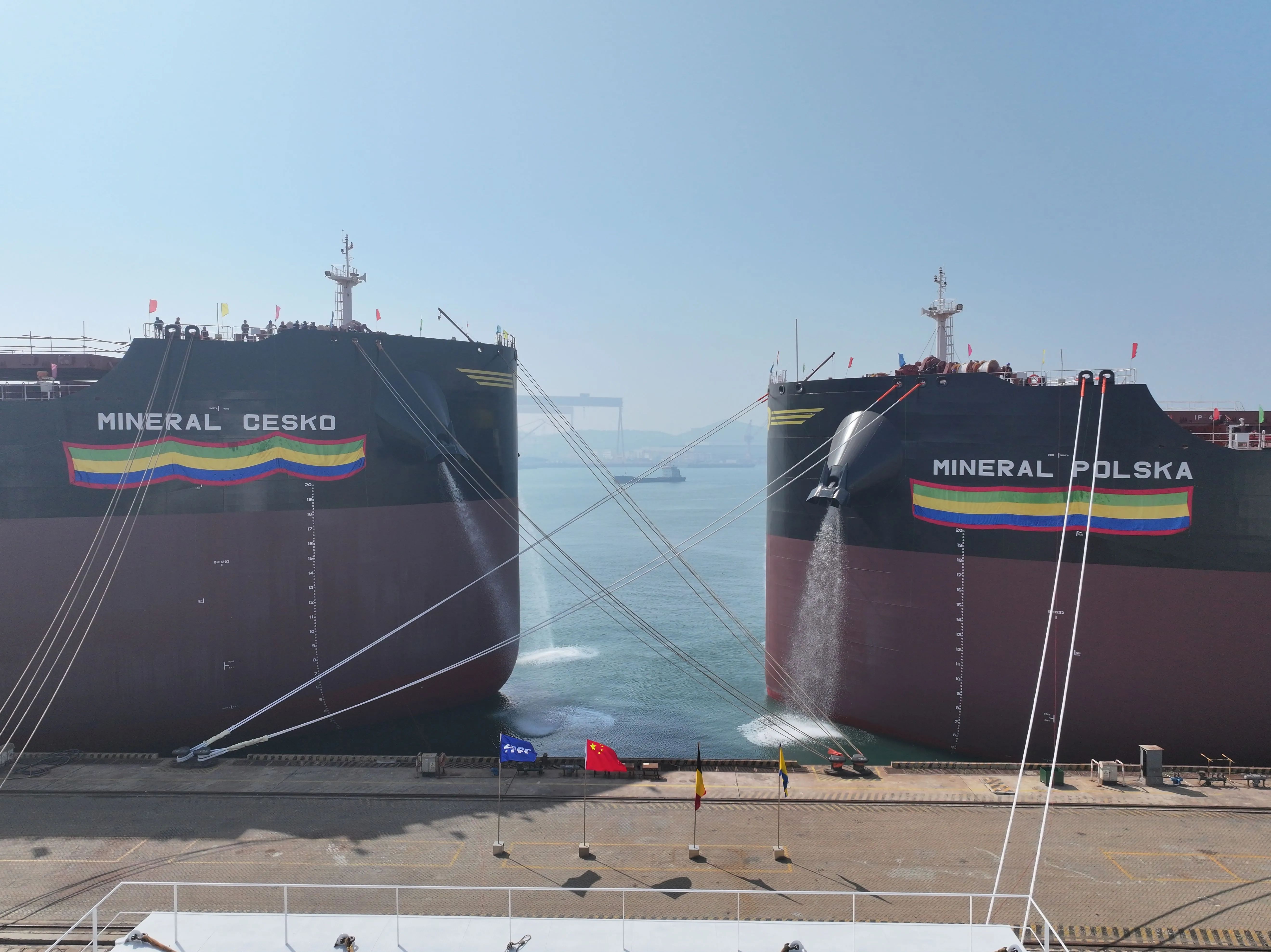 5月20日,北海造船为比利时CMB.TECH公司建造的2艘21万吨氨燃料预留散货船“MINERAL?CESKO”号和“MINERAL?POLSKA”号同日命名。