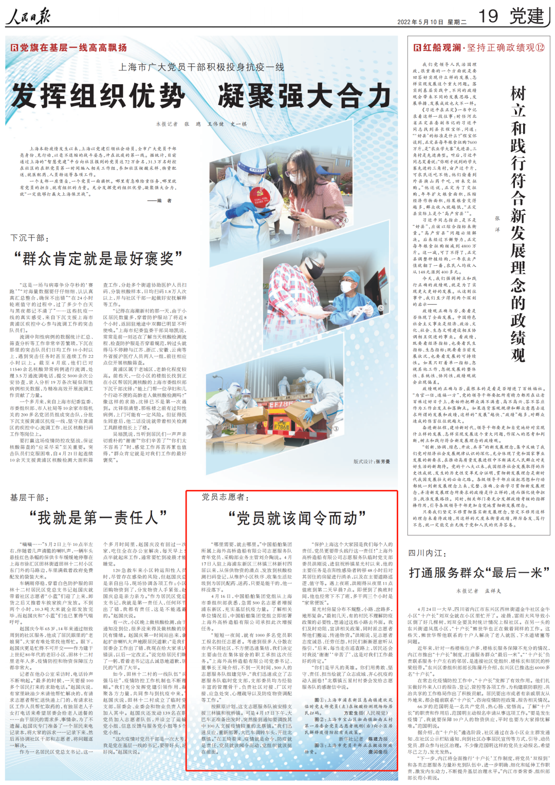 5月10日,人民日报发布文章《发挥组织优势 凝聚强大合力》。文章聚焦中国船舶外高桥造船志愿服务队。
