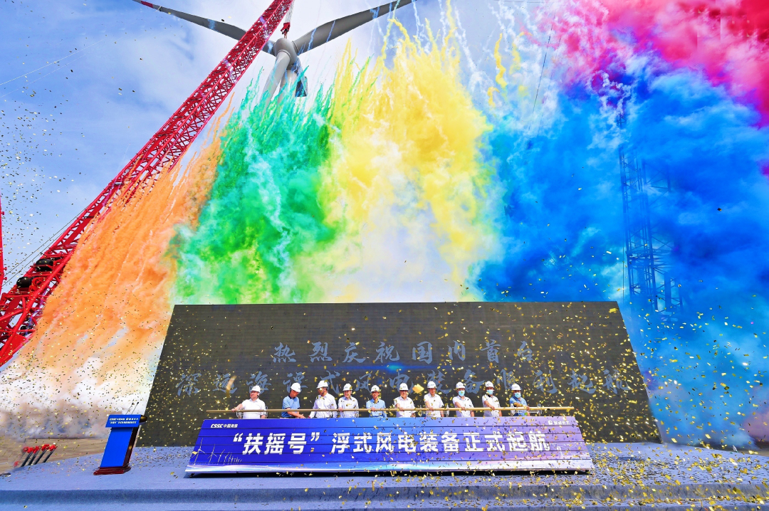 5月29日,中国船舶集团旗下中国海装牵头研制的国内首台深远海浮式风电装备——“扶摇号”从广东茂名码头起航,前往平均水深65米的广东湛江附近海域投入示范应用。