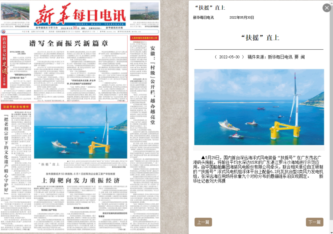 这是“扶摇号”继机组、浮体下线后,再次取得的又一里程碑成果,将对我国海上风电迈向深远海,助力“30·60”双碳目标达成产生重大意义。