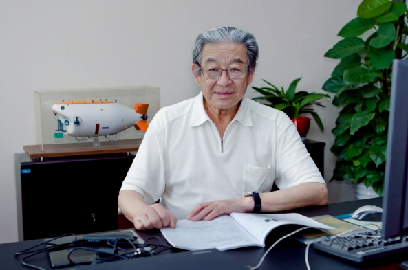 今年87岁的徐芑南仍然每天到中国船舶科学研究中心上班。办公楼搬了新址,办公室换过几间,不变的是书架上的潜水器模型:蛟龙号、深海勇士号和奋斗者号。它们默默地陪伴着徐芑南的每次搬家,也排列出了他“向海而行、勇往直‘潜’”的一生。