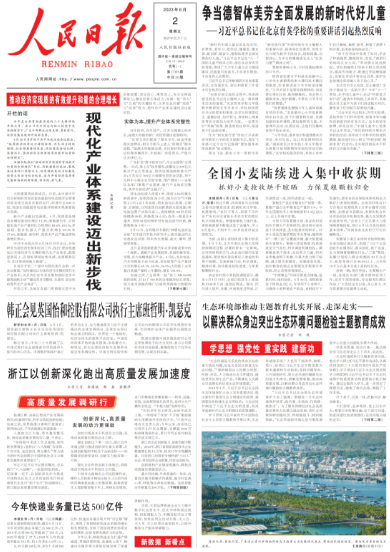 6月2日,《人民日报》在头版“推动经济实现质的有效提升和量的合理增长”专栏的开栏篇目《现代化产业体系建设迈出新步伐》中,聚焦中国船舶集团旗下外高桥造船通过国产首制大型邮轮工程补齐短板,产业链供应链韧性持续夯实,初步形成中国邮轮标准体系。
