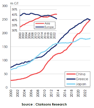 △船东国排名 来源:克拉克森数据