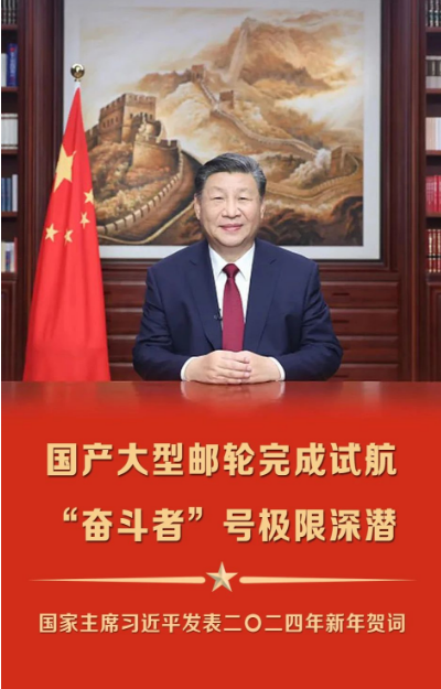 倍受鼓舞!国家主席习近平发表二〇二四年新年贺词,点赞国产大型邮轮、“奋斗者”号!