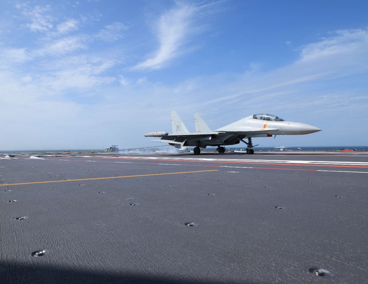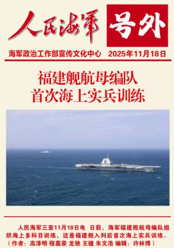 在福建舰的各个战位上,官兵通力协作、密切配合,高效完成各型舰载机转运、出动准备和起降保障工作。全舰官兵牢记习主席期望嘱托,全力以赴投身实兵训练任务,不断提升专业技能和打仗本领,着力加快福建舰战斗力建设,向着形成编队体系作战能力的目标迈出了更为坚实的一步。