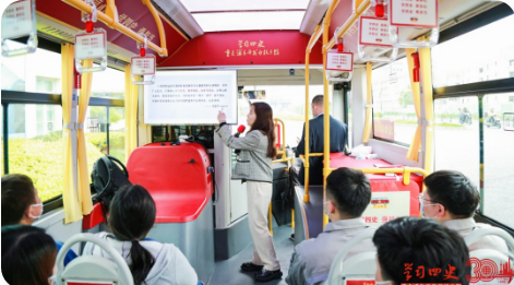 红色巴士从浦东开发陈列馆出发,讲解员带领“乘客”一路学习小陆家嘴地标背后的故事,感受国际金融中心的崛起,回顾浦东从阡陌农田到高楼林立30年的发展历程。窗内窗外,历史故事与魔都气象交织,边行车、边参观、边讲课、边互动的学习形式,让“四史”学习的过程更具代入感。本次“四史”学习不仅激发了青年的拼搏意志,增强了对城市发展及企业改革的认同感,更坚定了岗位立功的理想信念,引领青年不懈努力,为企业高质量发展汇聚奋进力量。