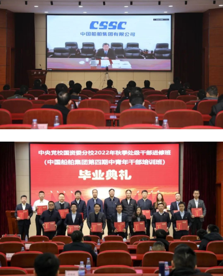 12月9日,中国船舶集团第四期中青年干部培训班(中央党校国资委分校2022年秋季处级干部进修班)召开毕业典礼。中国船舶集团有限公司总经理助理、人力资源部(组织人事部)主任唐永春出席仪式并讲话,典礼由集团公司党校常务副校长、综合院党委书记杨志军主持。
