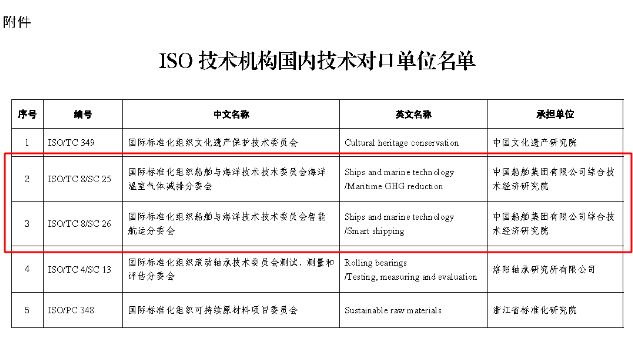 由中船综合院承担2个国际标准化组织(ISO)技术机构国内技术对口单位,分别是: