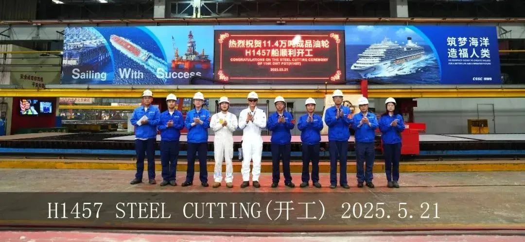 5月21日,外高桥造船为土耳其YASA公司建造的11.4万吨阿芙拉型油船H1457船开工仪式顺利举行。目前,各项生产准备工作均在按计划落实。