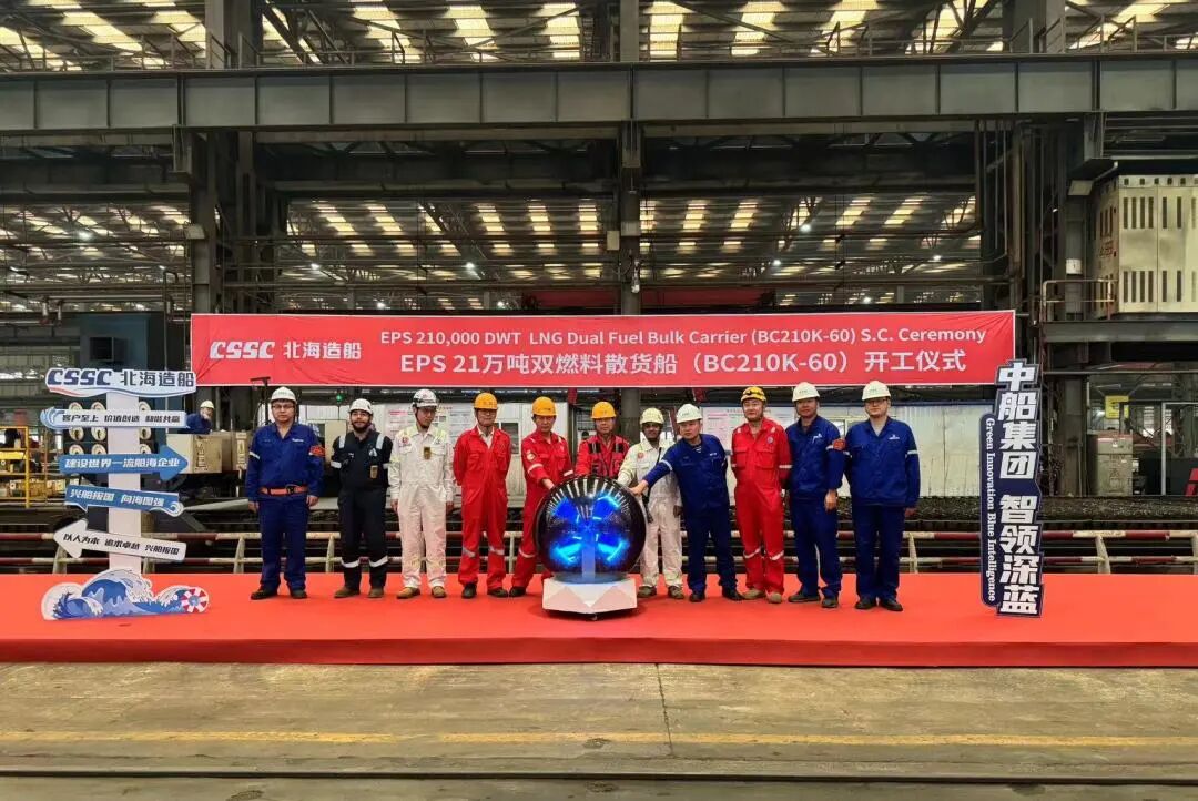 北海造船承建的新加坡EPS公司21万吨液化天然气(LNG)双燃料动力散货船项目60号船和比利时CMB.TECH公司21万吨散货船项目79号船顺利开工。60号船是该系列船舶中的第4艘,79号船是北海造船为该船东建造的第27艘同型船。