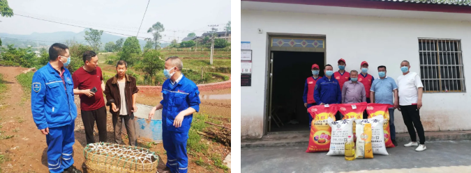 ????在前期走访了解的基础上,根据5户家庭实际情况,重庆红江精准制定帮扶措施,为生活困难家庭送去大米、食用油等生活物资,向有产业发展需求的家庭赠送鸡仔100只、猪仔2头、猪饲料3包、化肥8袋。