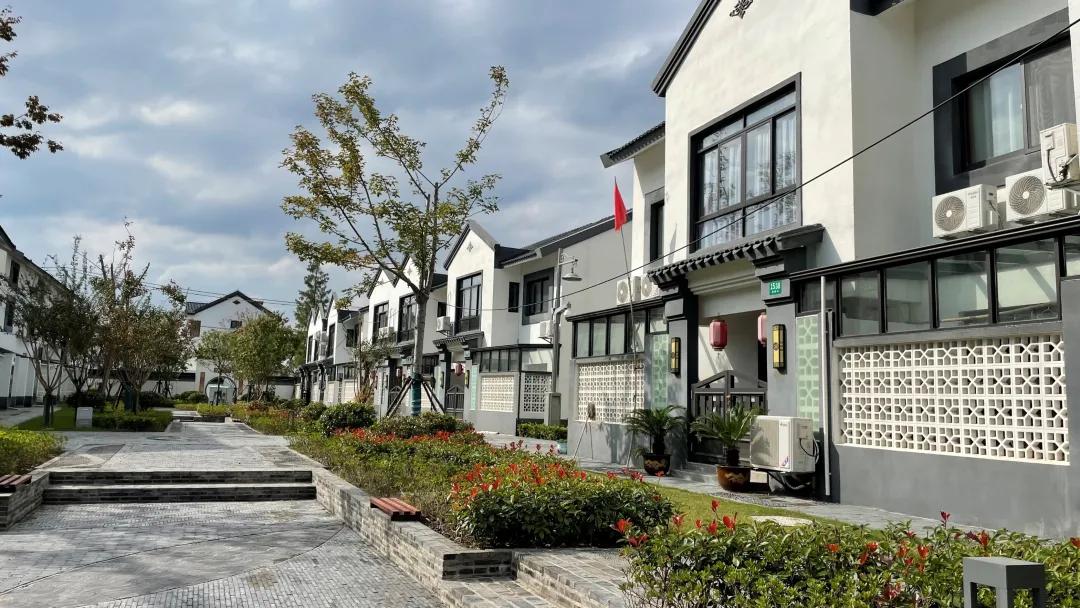以松江区黄桥村(上海市乡村振兴示范村)项目为例,中船九院一是规划推进农民集中居住改革,归并原本零散的居民用地,节省了30%的用地资源,目前新建一期二期用房已交付使用,500余户村民搬进了新村,改善了居住条件,提高了生活的质量。