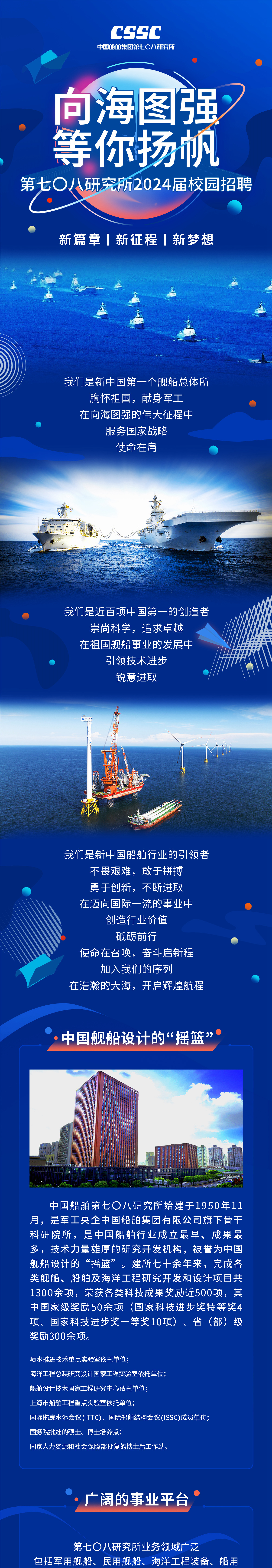 中国船舶集团七〇八所2024届校园招聘正式启动